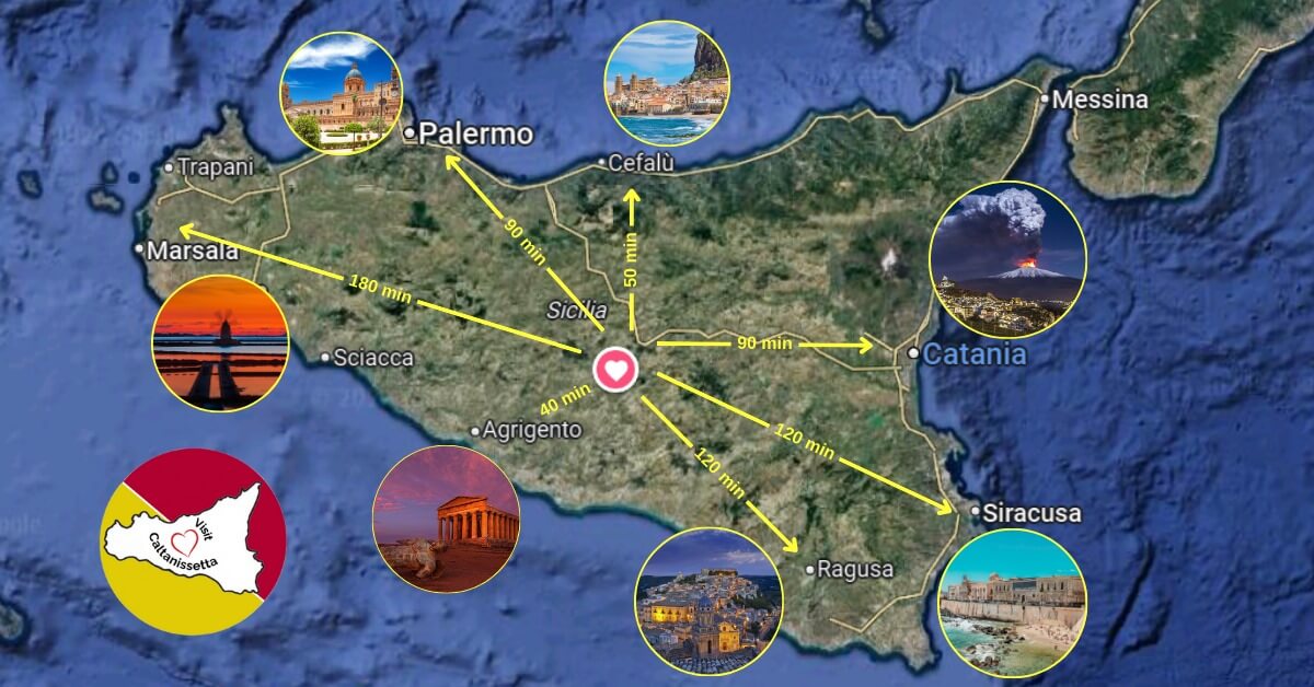 La Sicilia centrale rappresenta un punto di partenza ideale per itinerari versatili e ricchi di contenuti. Da Caltanissetta è possibile raggiungere borghi storici, siti archeologici, aree naturalistiche e mete gastronomiche in tempi relativamente brevi, senza la necessità di programmare spostamenti complessi.